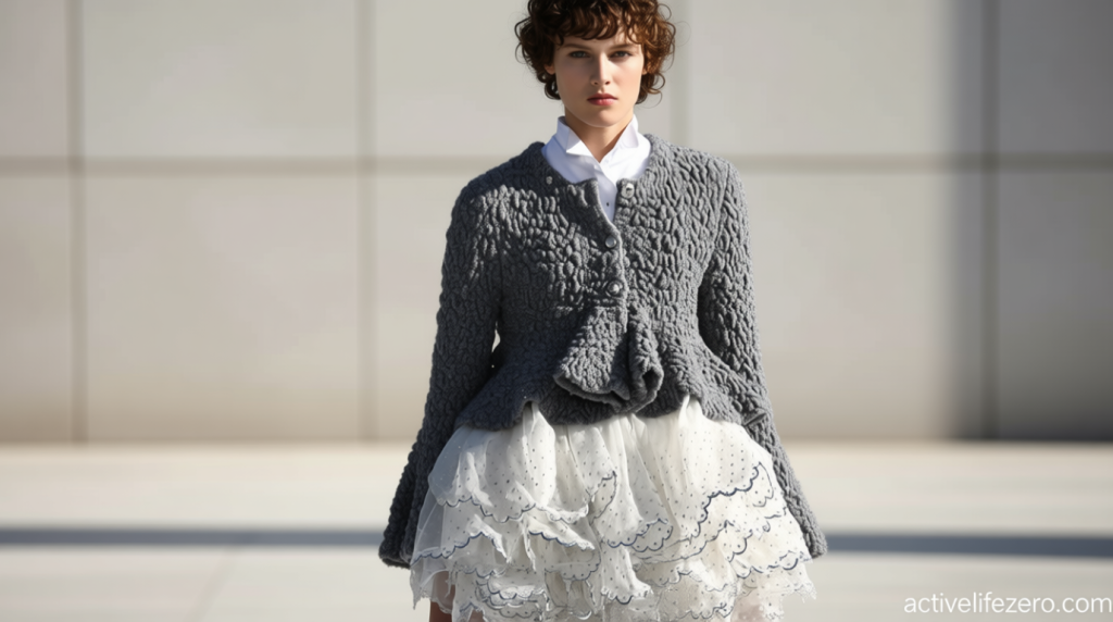 Still, when executed with precision, prettiness can captivate. Comme des Garçons’ Rei Kawakubo, the industry’s leading philosopher, delivered a collection that transformed simplicity into spectacle. Black, layered with texture and form, became a statement of both rebellion and refinement, proving that even the most basic elements can carry profound meaning.
